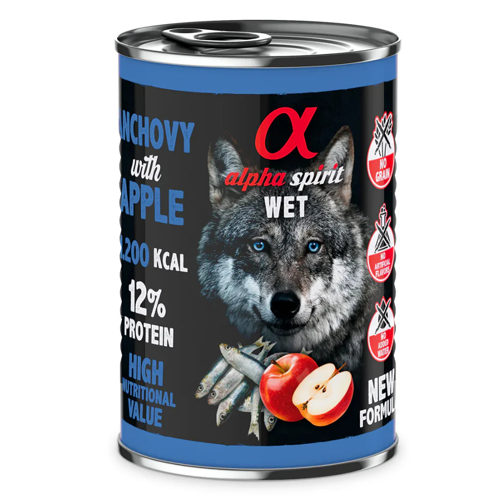 Alpha Spirit Anchovy with red apple wet dog food 400g