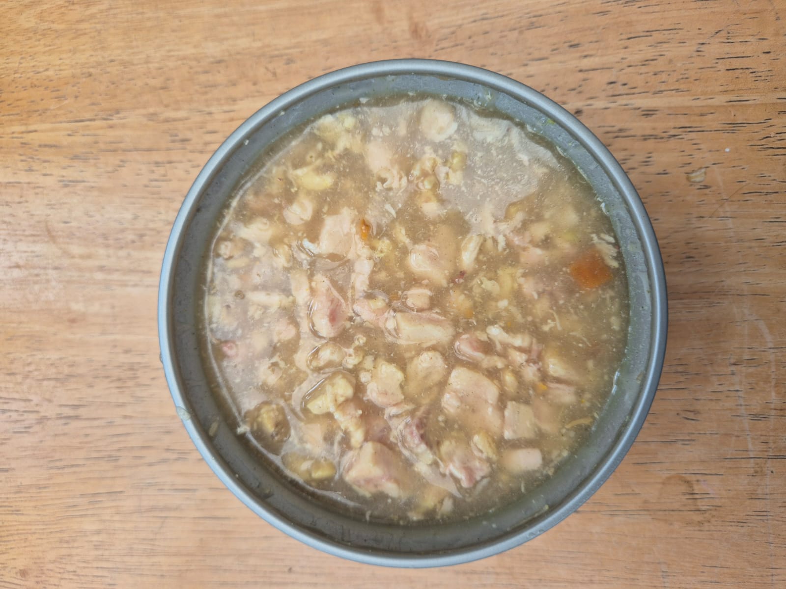 Ingredients: 97% fresh chicken, natural meat sauces, peas, carrots, sweet potato, spices