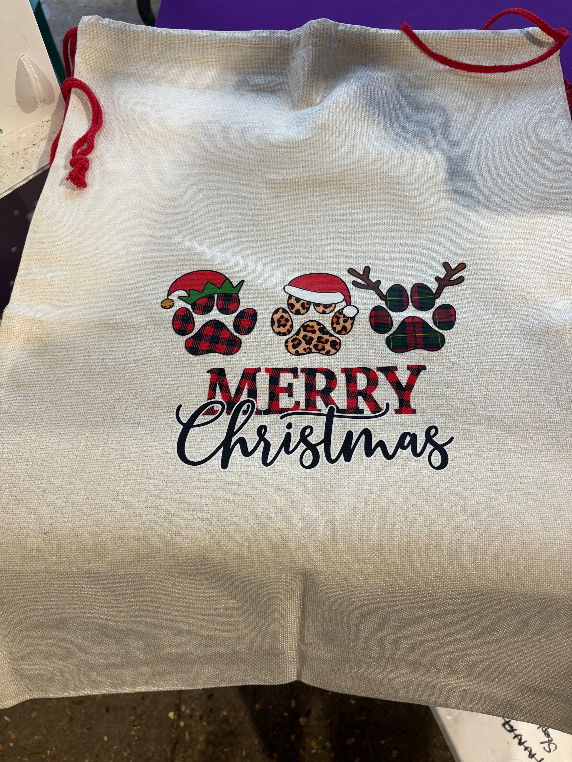 Fabric drawstring present sack to fill with your pet’s festive goodies.