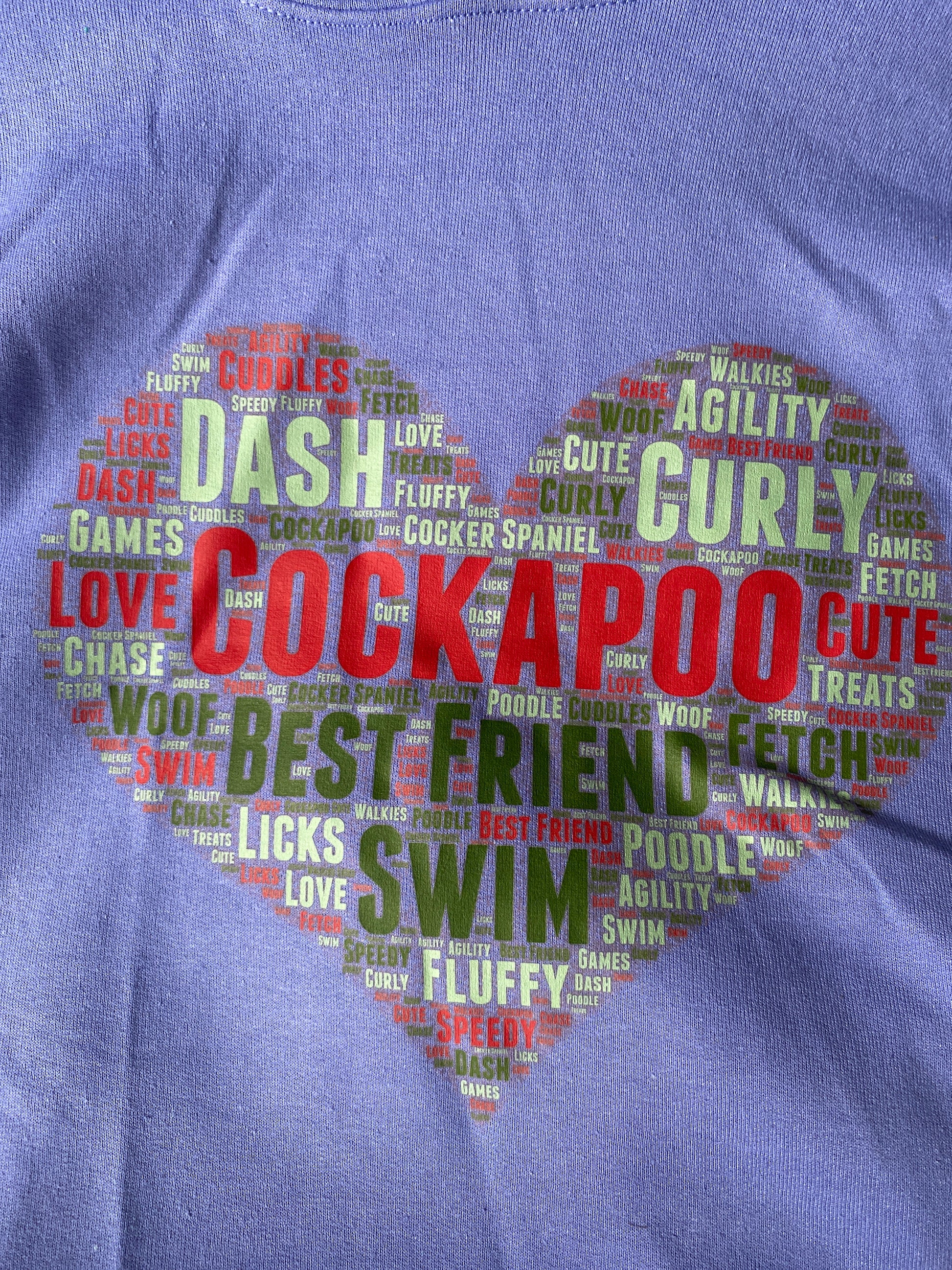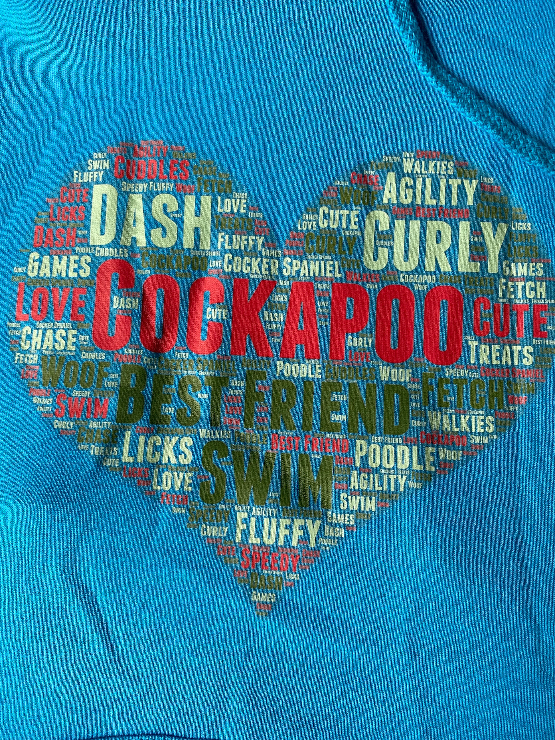 Adult hoodie with Cockapoo WordArt print on front of garment.