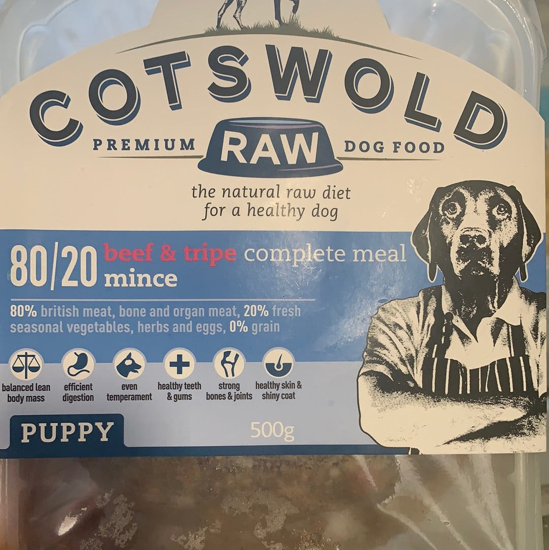 Cotswold Raw complete 80/20 puppy meals are made here in the Cotswolds from quality British meat and seasonal vegetables. Our food contains nothing but the finest, freshest, human grade ingredients, absolutely nothing is added that is not listed on the label.