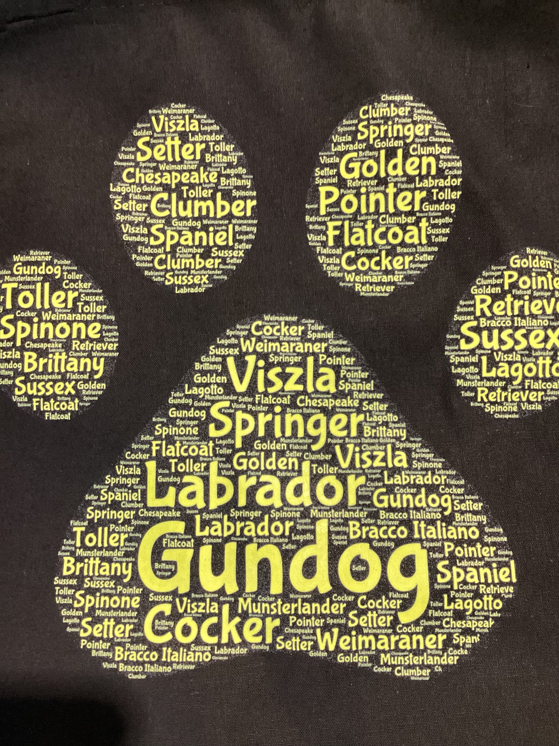 Large cotton reusable shopping bag. 18l capacity. With Gundog group themed WordArt motif