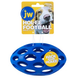 JW® Hol-ee® Football is a fun, versatile dog toy with extreme durability. The rubber gives it strength, bounce and a soft texture while the unique open design allows treats to be stashed inside for hours of entertainment. This is a non-toxic, durable, super-stretchy rubber multi-purpose dog toy. It's a fantastic treat ball, wonderful training aid, great for fetch, toss and tug, chewing and teething.
