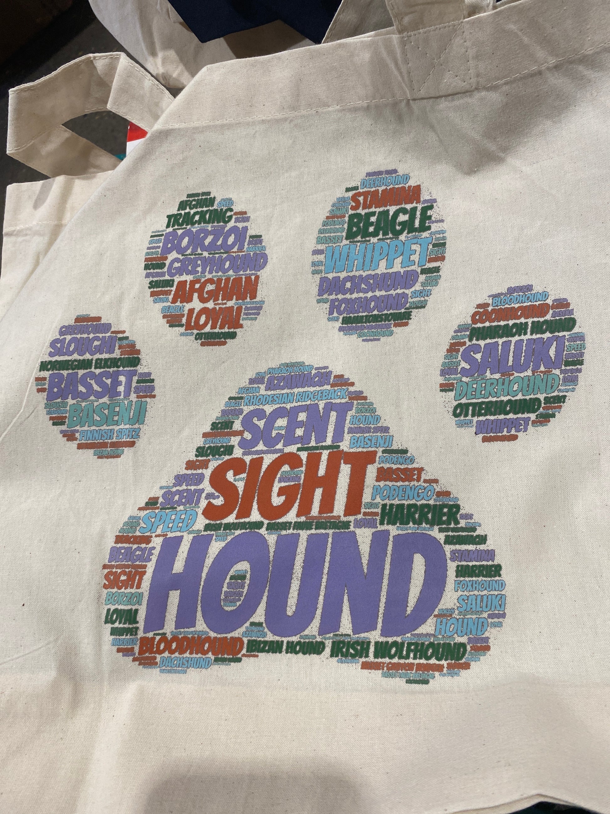 Large reusable shopping bag with Hound group themed WordArt motif.