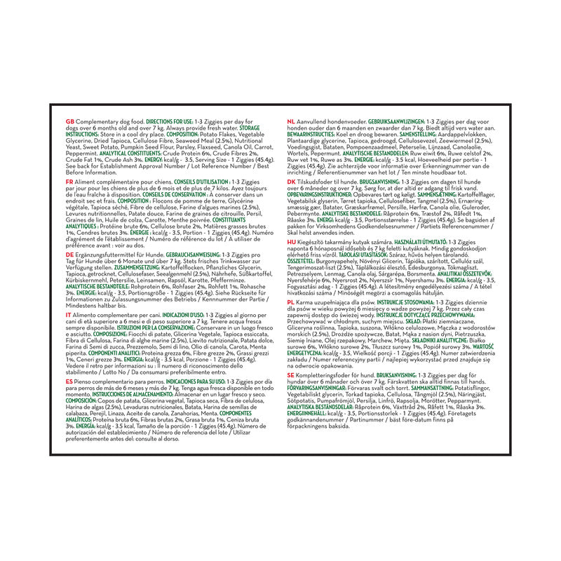 KONG Ziggies naturally delicious chews are specially designed and formulated to support dogs’ oral health. Firm texture and ridges effectively help push away plaque through the mechanical action of chewing, massage gums, and remove leftover food from dogs’ teeth, for fresh breath and bright smiles. With naturally delicious flavor dogs can’t resist, these chews are enriched with PhytoDent™ seaweed that’s packed with antioxidants, vitamins, minerals, and proteins. Plant-based and made without added wheat, corn, or soy, Ziggies are ideal as a treat or for stuffing inside a KONG Classic to extend daily dental care.