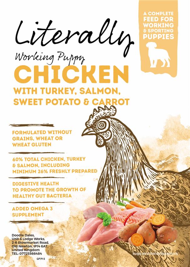 Literally Grain free puppy. Chicken, turkey & salmon. 2kg