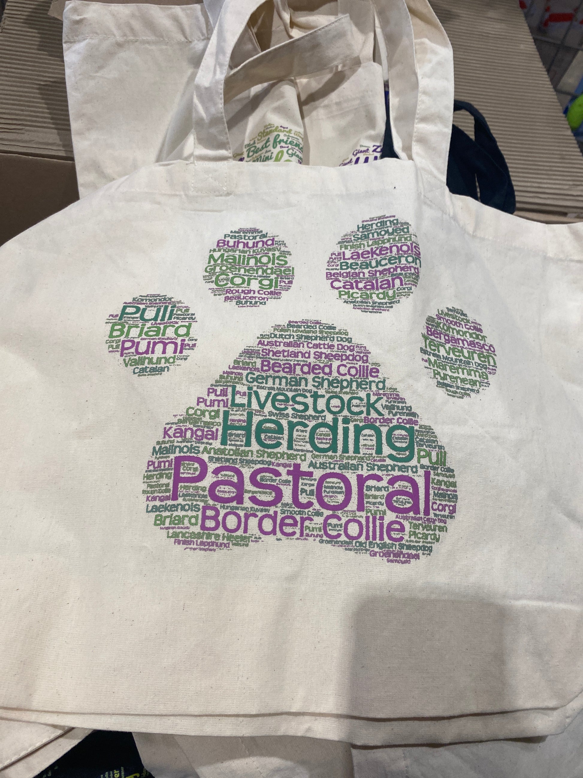 Large reusable shopping bag with Pastoral Breed themed WordArt motif.