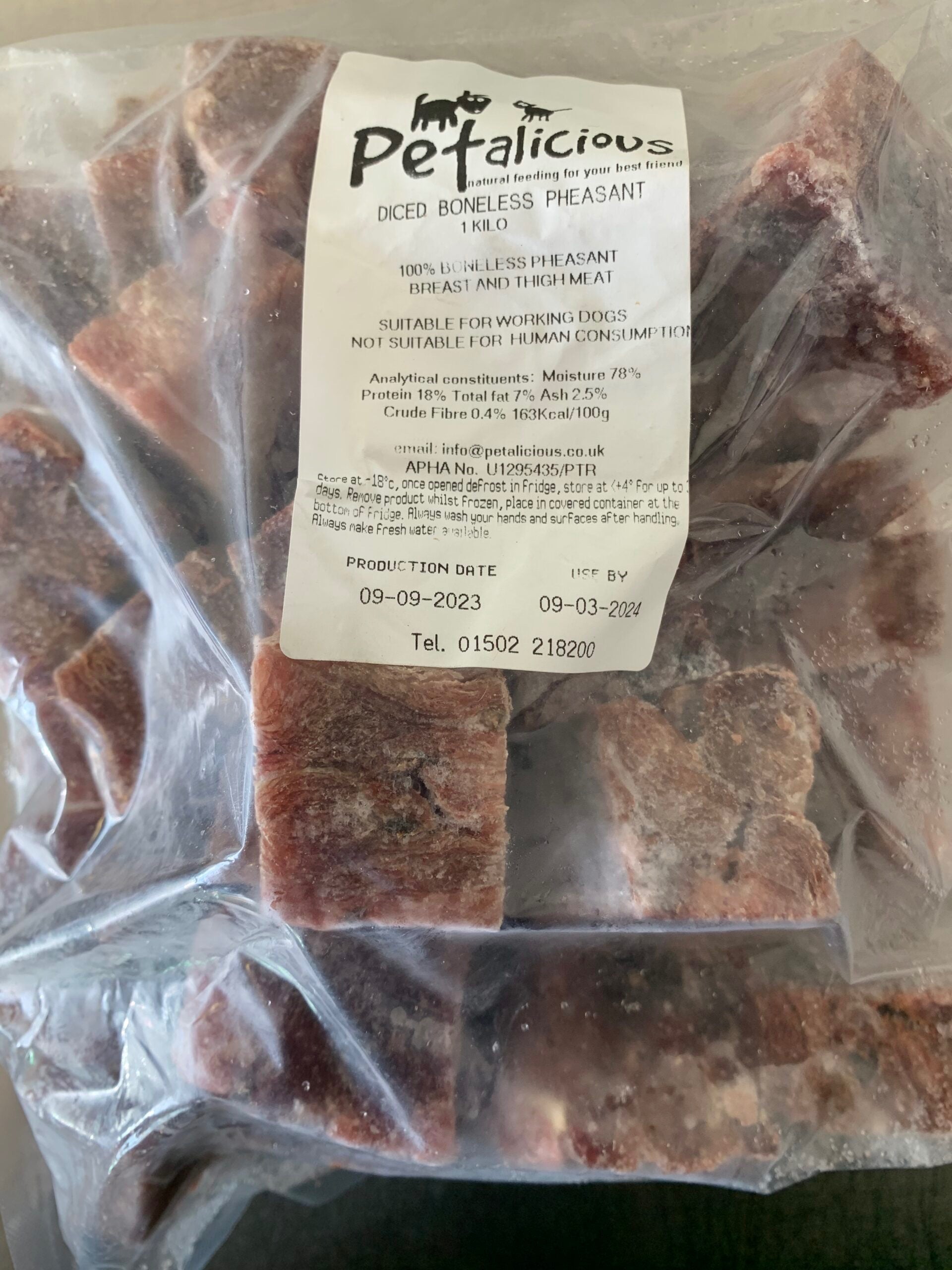 Petalicious Diced Boneless Pheasant chunks 1kg