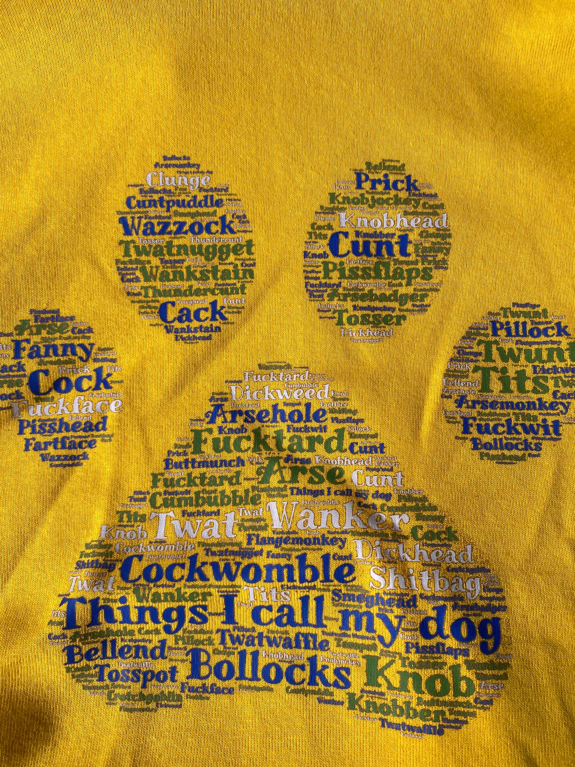 Adult hoodie with Things I Call My Dog WordArt print on front of garment.