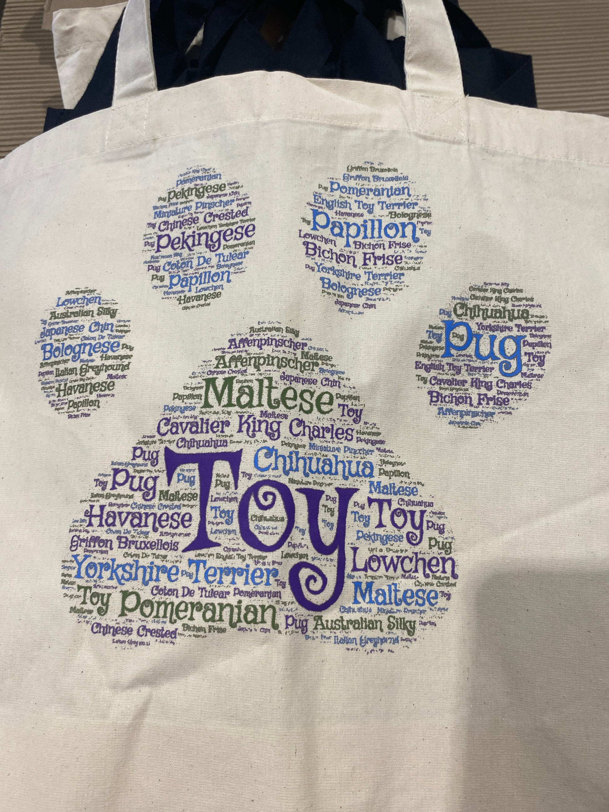 Large reusable shopping bag with Toy Breed themed WordArt motif.
