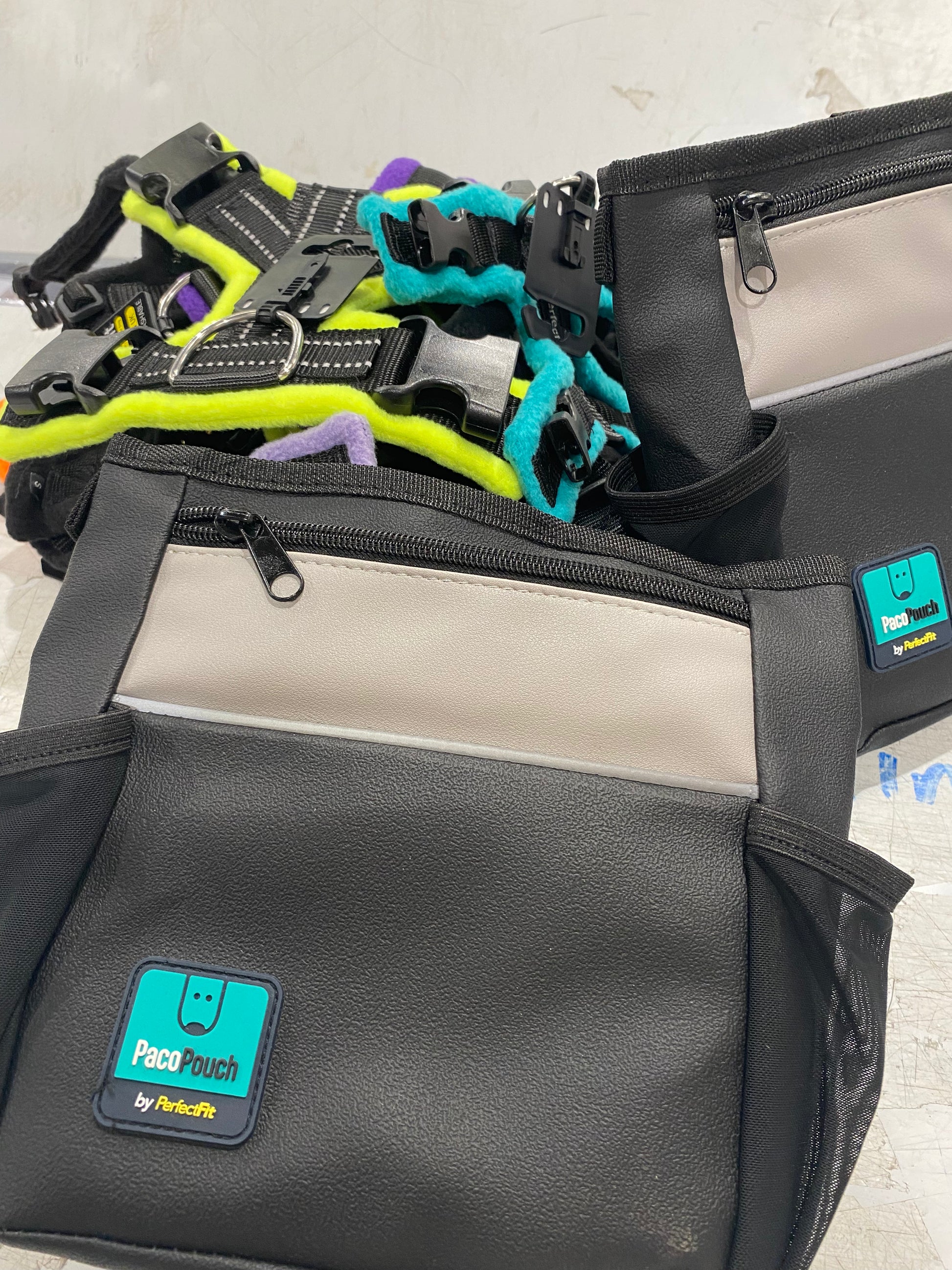Cross body or waist worn extra large dog treat pouch. Includes removable, dishwasher safe easy access insert to keep the bag clean when using fresher treats.